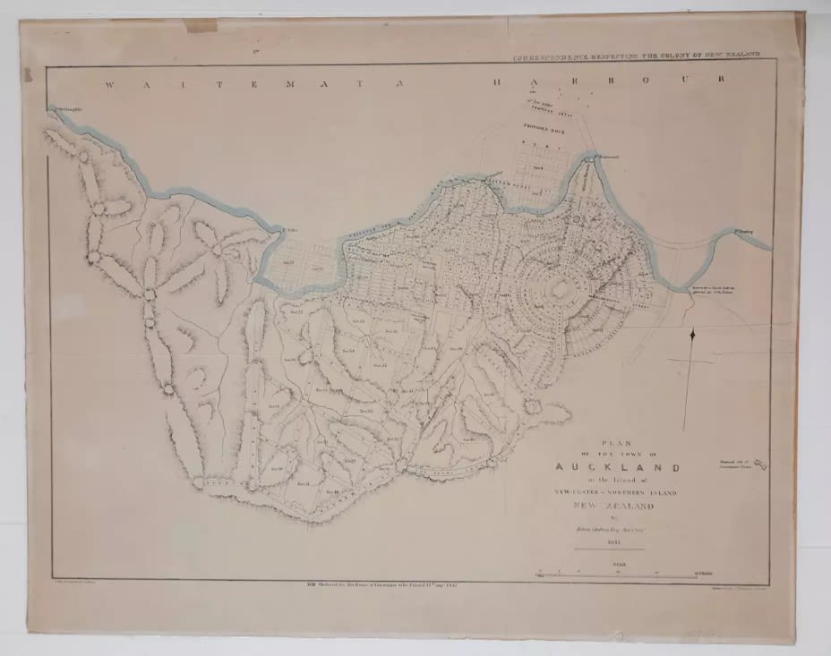 Mathew, F. (Surveyor General), & Bluett, T. (Lithographer). (1841). Plan of the town of Auckland, New Ulster, the capital of the colony of New Zealand [Map]. Auckland Libraries. https://kura.aucklandlibraries.govt.nz/digital/collection/maps/id/1634/